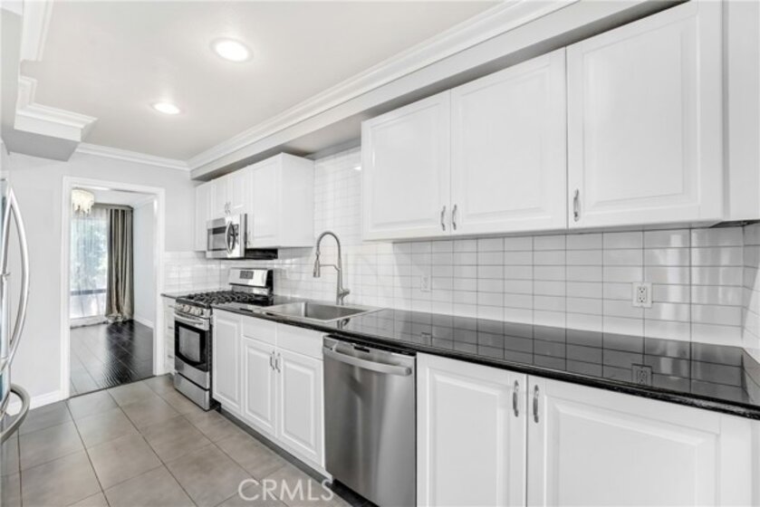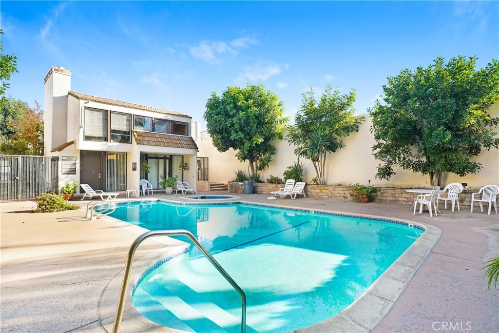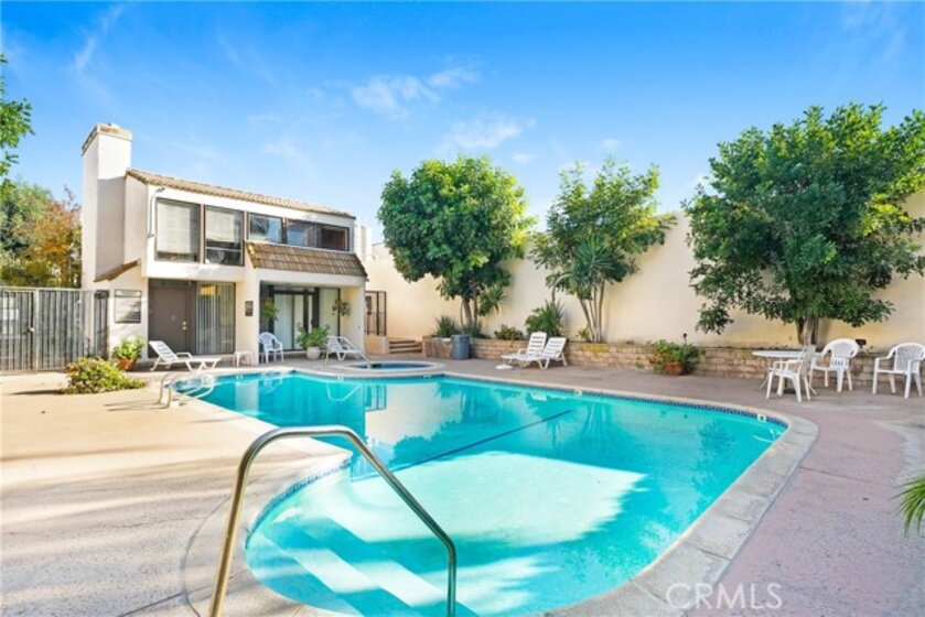 Welcome to this beautifully upgraded 3-bedroom, 2.5-bath townhouse offering 1,744 sq ft of bright, comfortable living in one of the community’s most desirable locations. This spacious unit features large front and rear patios, perfect for relaxing, entertaining, or enjoying the SoCal weather year-round. Inside, you’ll find an open and inviting layout with updated finishes throughout. The kitchen, dining, and living areas flow seamlessly, creating a warm and functional space for everyday living. One bedroom is conveniently located downstairs, ideal for guests, multi-generational living, or a private home office. Upstairs, you’ll find two additional bedrooms, including a well-appointed primary suite with walk-in closet for ample storage, along with the convenience of in-unit laundry located upstairs. All appliances are included, making this home truly move-in ready. This unit offers exceptional convenience, located just steps from the garage and the community pool, making daily living and recreation effortless. Residents enjoy a well-maintained community with HOA dues on the lower end, especially considering the extensive services covered. Monthly dues include water, sewer, sanitation, high-speed internet, cable TV, landscaping, janitorial services, pest control, community pool/spa/sauna, private rec room and exterior insurance. For added peace of mind, the community roofing was redone in early 2025. With its premium location, generous outdoor space, downstairs bedroom, in-unit laundry, and comprehensive amenities, this upgraded townhouse is the perfect blend of comfort, convenience, and value. Units in this complex are rare to come up. Hurry, don’t miss this opportunity!
