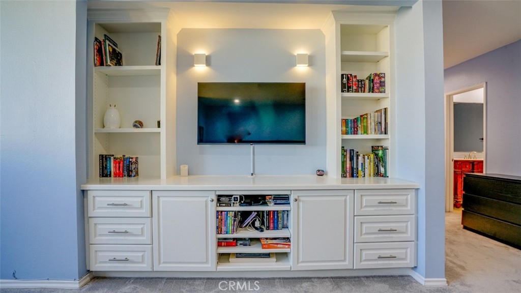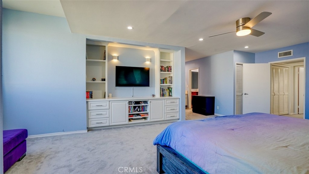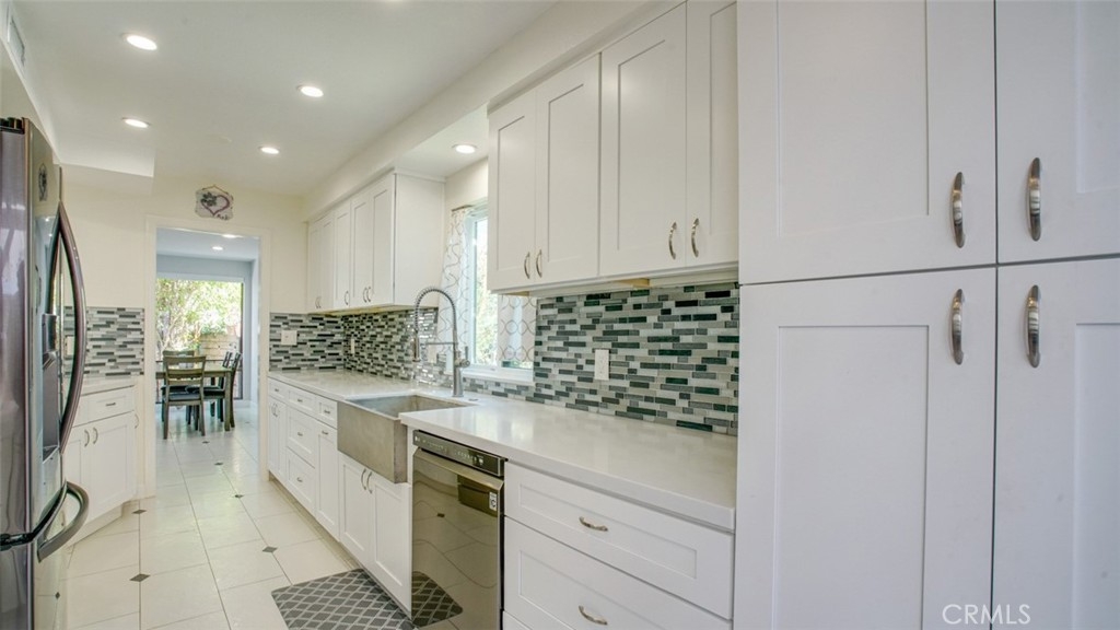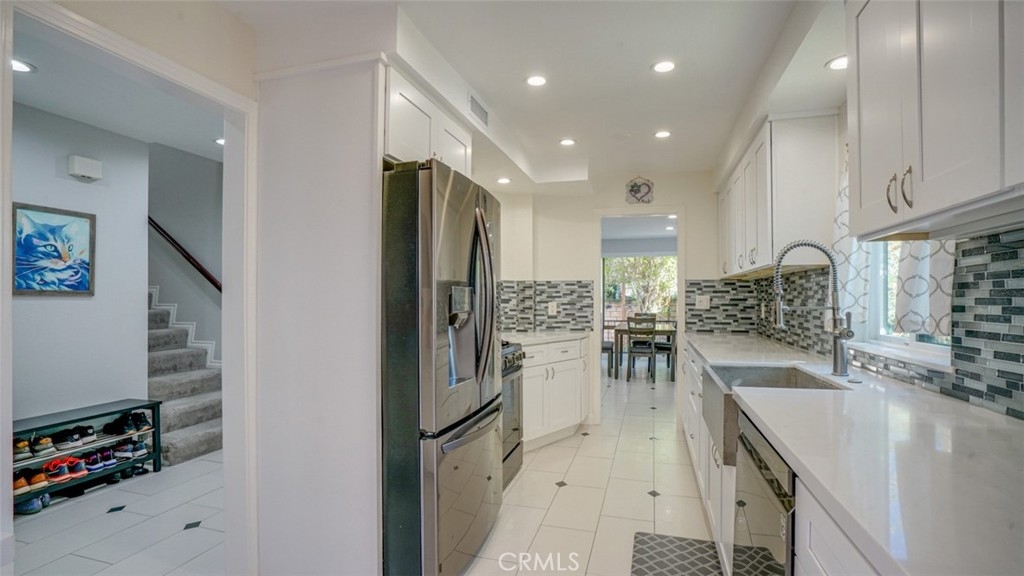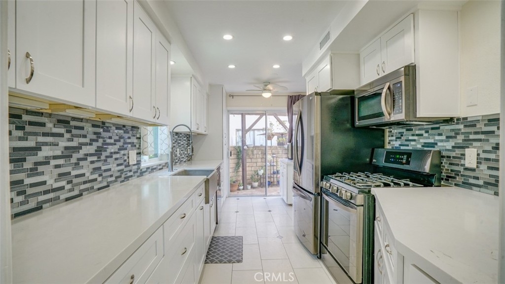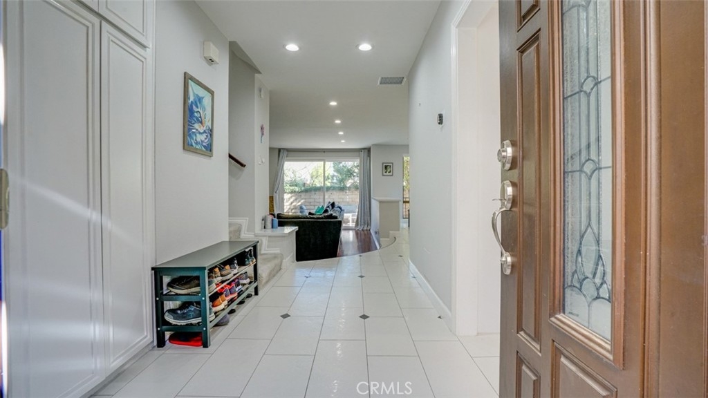 Discover this beautifully designed and spacious townhome featuring, stylish finishes, and luxurious upgrades throughout. Offering over 2,000 sq. ft. of living space, this 3-bedroom, 2 1/2 bath home boasts an open floor plan that seamlessly connects the foyer to a grand living room with high ceilings and an abundance of natural light. The dining area features a custom-built buffet with a quartz countertop, ideal for entertaining. The remodeled gourmet kitchen impresses with white shaker, soft-close cabinetry, quartz counters, a sleek designer backsplash, and an ultra-stylish cement sink. Upstairs, retreat to the expansive master suite—a true sanctuary complete with a walk-in closet, vanity, and a spa-inspired en-suite bath. A junior master suite with generous closet space and a beautifully appointed bathroom adds to the luxurious feel. Conveniently located upstairs, the laundry area offers added functionality. The main level features a versatile den/3rd bedroom with custom shutters and its own 1/2 bathroom. Step outside to two serene patios, perfect for al fresco dining, entertaining, gardening, or simply enjoying your private oasis. The complex itself resembles a luxury resort with lush landscaping, a sparkling pool, spa and a rejuvenating sauna. This home is a blend of style, comfort, and convenience—perfect for those seeking a sophisticated yet cozy retreat.