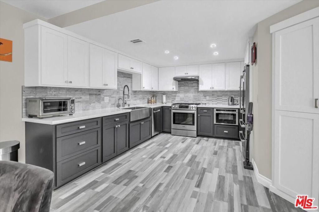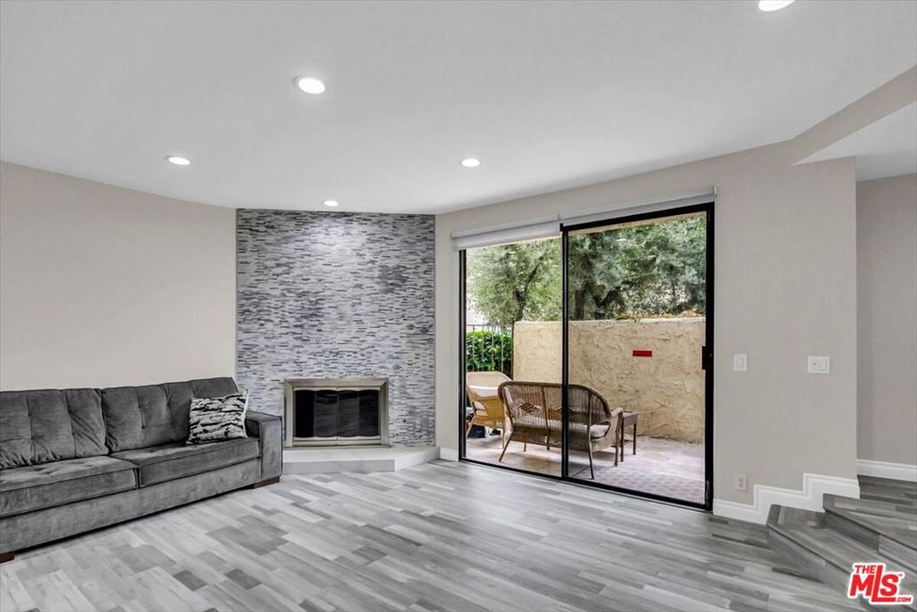 Luxury, Stunning, Tri Level Townhouse in Encino Plaza South complex. Direct private entry from the street. Move-in ready. Flexible floor plan and open-concept living room with modern fireplace, recessed lighting throughout. Custom designed kitchen with marble backsplash and quartz counter tops, BOSCH appliances, pantry with pull out shelves, plus all appliances included in the sale. Upstairs specious muster bedroom features a vaulted ceiling, walk-in closet, fireplace and balcony. Muster bathroom has double sink vanity, separate tub and shower. The secondary bedroom is ensuite with walk-in closet. Upgraded A/C and subpanel, bedroom split system , flooring, window shutters. Enjoy comfortable outdoor spaces for entertaining or just hanging out with the family in style. Additional amenities include a bonus room downstairs, laundry or an extra storage room with direct access from side by side parking community garage, lots of storage spaces in the unit. The resort like complex has pool, spa, sauna, clubhouse, rec room with billiard and ping pong tables and guest parking spaces. HOA covers EQ insurance, landscape maintenance, water and trash.