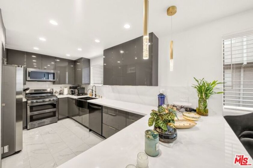 Fall in love with this stunningly reimagined modern townhouse in the coveted Encino Spa East community! Offering over 1,700 sq. ft. of thoughtfully redesigned living, this home exudes style, comfort, and sophistication. The inviting living room features soaring vaulted ceilings and a cozy fireplace, flowing seamlessly into the chic dining area and showstopper chef's kitchen. The kitchen boasts custom cabinetry, a breakfast bar, and designer finishesideal for entertaining. Sleek tile flooring flows throughout the first level, which also includes a remodeled powder room and a private patio for indoor-outdoor living. Upstairs, the luxurious primary suite offers vaulted ceilings, a private balcony, dual closets, and a spa-like bathroom. The second suite features its own private bath, while a versatile loft/den offers space for a home office or media nook. Freshly painted and move-in ready, this home includes resort-style amenities: gated entry, sparkling pool, spa, clubhouse, and fitness center. HOA covers water, cable, internet, and earthquake insurance. Moments from Ventura Blvd's vibrant shops, dining, and nightlifethis is your dream home