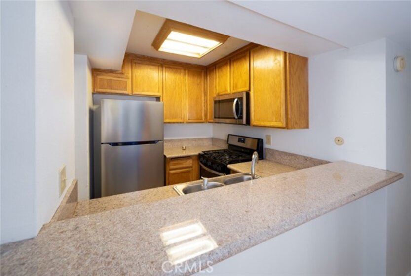 Bright & Spacious 2-Bedroom, 2-Bath Home with Modern Upgrades & Resort-Style Amenities Step into this beautifully updated and inviting 2-bedroom, 2-bathroom home offering comfort, privacy, and a fantastic community lifestyle. Freshly painted throughout, the open-concept living space is enhanced by rich, natural-toned flooring and abundant natural light, creating a warm and welcoming atmosphere. The updated kitchen is a chef’s delight, featuring granite countertops, ample cabinet storage, and brand-new stainless steel appliances including a stove, overhead microwave, and dishwasher. A charming breakfast bar connects the kitchen to the living area, perfect for casual dining or entertaining guests. The primary suite is spacious and private, offering dual closets and an ensuite bathroom. The secondary bedroom, located on the opposite side of the home, offers flexibility as a guest room, office, or additional bedroom, complete with a standard closet. A second full bathroom is conveniently located just across the hall, along with a large linen/storage closet for added convenience. Step outside to your private patio, surrounded by lush greenery and mature trees—ideal for relaxing, reading, or entertaining outdoors. Community amenities include:Sparkling swimming pool, BBQ area, Fully-equipped gym, Recreation room with kitchen—great for gatherings and special occasions, Onsite maintenance staff for added peace of mind, HOA dues include: water, gas, and trash services.Parking: 2 assigned spaces + guest parking available. This home combines comfort, style, and convenience in a vibrant community setting. Don’t miss the opportunity to make it yours!