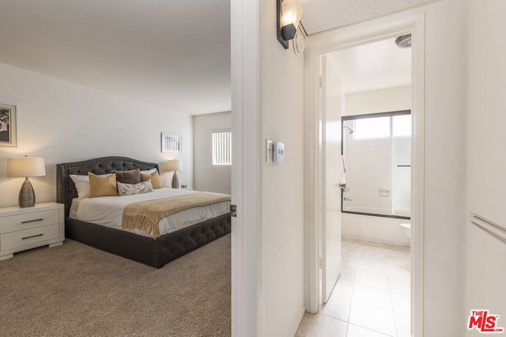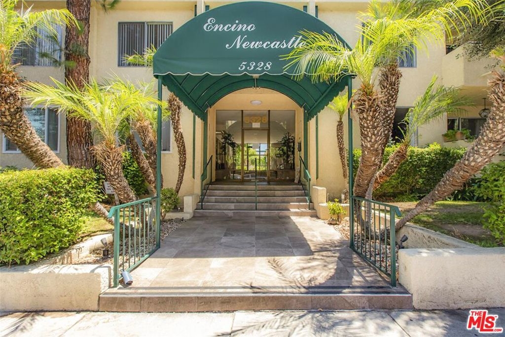 Immaculate top floor Penthouse unit at the conveniently located Encino Newcastle Condos. This Mid-Century style medium sized building is popular due to it's courtyard style overlooking a central pool and spa and lush grounds. This light and bright unit is up a staircase shared by only 2 units with a private entrance. The spacious full 1 bedroom offers a granite kitchen, central great room for living & dining. A large bedroom suite with walk-in closet & bright bath completes the floorplan. The rare & spacious balcony terrace is perfect for morning coffee or evening cocktails overlooking the lush courtyard and pool/spa. Freshly painted and ready to move, this unit is ready to call home.