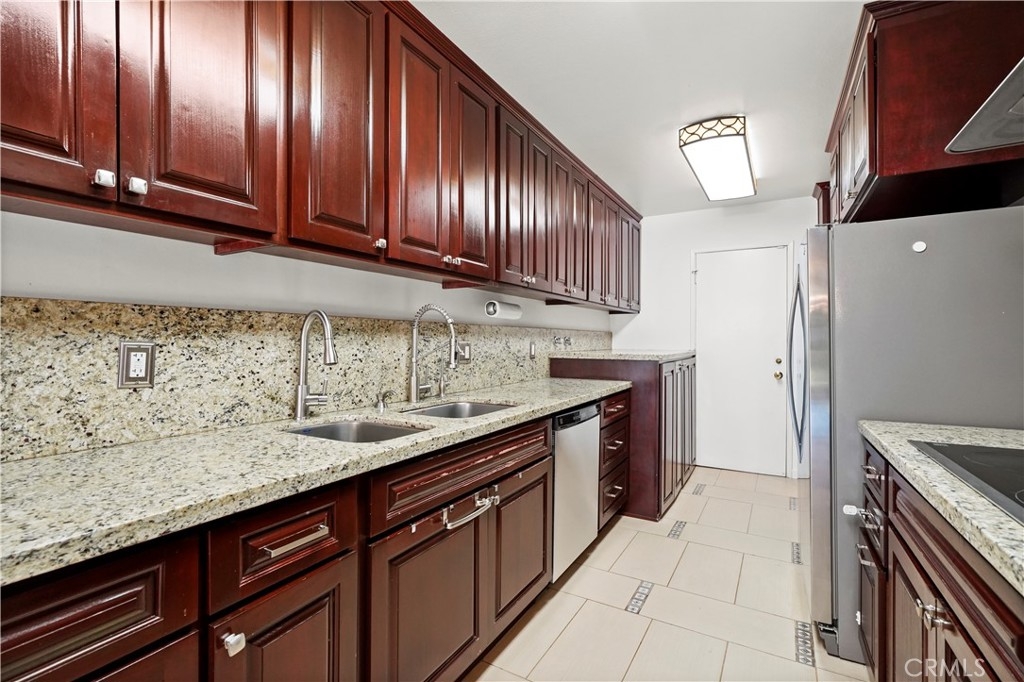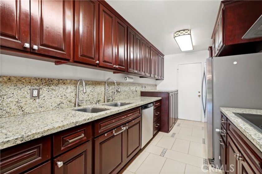 Welcome to Encino Spa, a highly sought-after and exceptionally secure community offering true single-level living. This spacious 2-bedroom, 2-bath residence spans 1,674 square feet and is tucked behind a gated complex entrance with an additional secured entry to the building—providing peace of mind and privacy. Inside, the home features generously sized bedrooms, including a primary suite with a large bathroom and walk-in closet. The expansive living room is ideal for both entertaining and everyday comfort, highlighted by a cozy fireplace and stylish bar area. A beautifully updated kitchen opens seamlessly to the formal dining space, creating a bright and inviting flow. Sliding glass doors from both the living room and primary bedroom lead to an oversized private balcony—perfect for morning coffee, evening relaxation, or indoor-outdoor entertaining. An in-unit laundry area includes a washer and dryer for added convenience. The community offers resort-style amenities, including a gated pool, indoor spa, and recreation room. Completing the package are two side-by-side parking spaces—a rare and valuable feature. Secure, spacious, and ideally located, this Encino Spa residence offers comfort, convenience, and a lifestyle you’ll love coming home to.