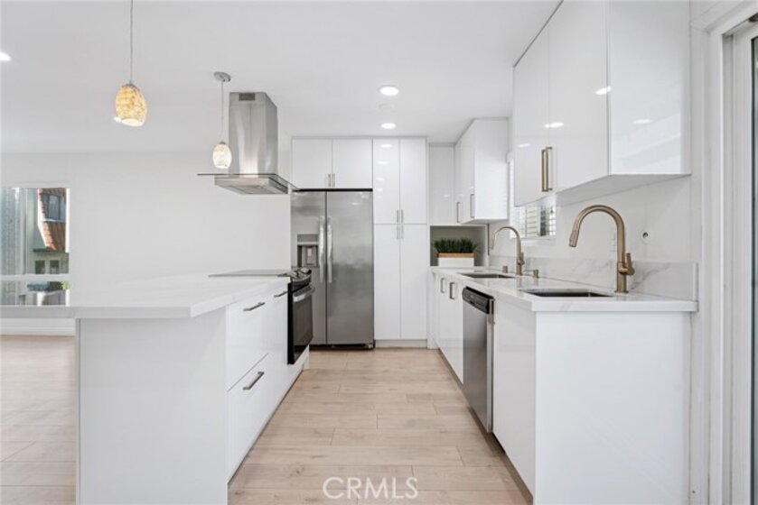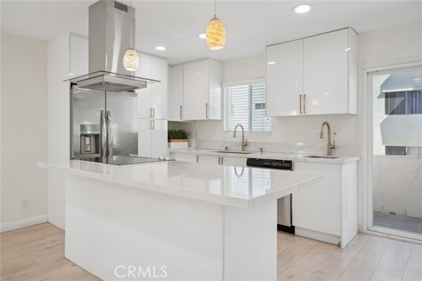 Beautifully Upgraded 2+2 End Unit Condo with Bonus Room in Prime Encino Location! Welcome to this light-filled and stylishly remodeled end-unit condo located in the desirable Encino Terrace community. This spacious 2-bedroom, 2-bathroom home also includes a versatile bonus room—perfect for a home office, den, or easily convertible into a third bedroom, complete with a wall-to-wall custom built-in closet. The open-concept layout features a chef-inspired kitchen with a large island, quartz countertops, stylish cabinetry, double sinks, stainless steel appliances, and a sleek range hood. The kitchen flows seamlessly into the dining and living areas, creating a perfect space for entertaining. Natural light floods the unit, highlighting the brand-new flooring and recessed lighting throughout. The primary suite is spacious and bright, with a beautifully upgraded en-suite bathroom offering double sinks, a walk-in shower, and a custom walk-in closet. The secondary bedroom includes a built-in desk and its own custom closet, with a full bathroom conveniently located nearby. Additional highlights include dual-pane windows, updated finishes throughout, and two covered tandem parking spots with storage, located close to the unit. Enjoy the resort-style amenities of Encino Terrace, including two pools, a spa, gated entry, and two community laundry rooms—one just steps away from your door. Ideally located just off Ventura Blvd, you’re minutes from top restaurants, shopping, and easy freeway access. This turnkey unit combines comfort, function, and location—don’t miss this incredible opportunity to own in the heart of Encino!