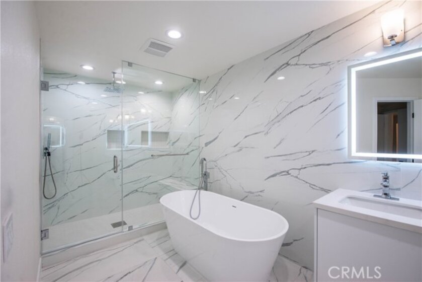 Welcome to this beautifully updated, high-end condo featuring an open and airy floor plan designed for modern living. The spacious living area flows seamlessly into a separate dining space—perfect for entertaining or relaxing in style. This is a bright, inviting atmosphere throughout. Enjoy newly installed flooring in the kitchen, hallway, and bathrooms, along with brand-new stainless steel appliances and a brand new air conditioning system for year-round comfort. The kitchen offers sleek finishes and contemporary appeal, while both bathrooms are tastefully refreshed. It looks like hotel living. Step outside to your private enclosed patio, ideal for morning coffee or evening unwinding. Situated in the heart of Encino, this home combines comfort, sophistication, and convenience—close to shopping, dining, and everything the Valley has to offer. This unit has 2 car side by side parking located next to the elevator.
