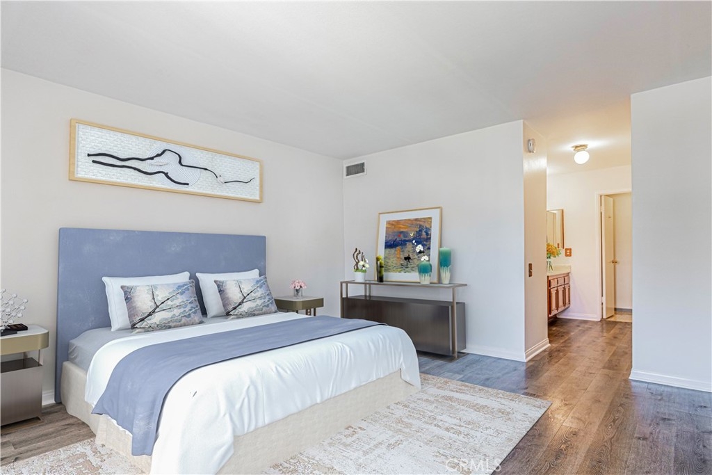 There are many great reasons you'll want to own this magnificent property at Encino Villas! A corner unit with two bedroom suites at opposite sides, located on the second floor in the center of the complex; away from traffic and alley noise this spacious condo is move-in-perfect. Tile kitchen counter tops, an abundance of cabinets and breakfast bar make entertaining easy. The elegant living/ dining room with wet-bar, fireplace and big balcony view towards the pool & spa area. Both the primary and guest bedrooms have custom, large capacity shelving and closets as well as linen space. In the recent past each homeowner was assessed nearly $50,000 to reinvigorate and renovate this stunning and modern complex. Secure and gated, this resort like compound feels like being in Palm Springs. Sparkling swimming pool and spa area with ample lounges, tables, chairs and shady umbrellas under which to relax. BBQ on one of several gas grills. The recreation room offers a fitness center/gym with new equipment, pool table, big screen TV and gaming tables for poker, Mahjong or puzzles. Reserve the space and host a party at the clubhouse with its wall of windows and stacked-stone fireplace, it is beautiful! The seller of this condo has paid off this assessment in full, meaning your HOA dues will be $399 per month instead of the $700+ dollars most homeowners pay. So much for so little $$$. Side by side parking, two laundry rooms on each floor, renovated elevators and Earthquake Insurance. Enjoy restaurants, stores and supermarkets along Ventura Blvd. Easy access to 101 and 405 freeways, too. Life is returning to the new normal, Encino Villas is the right place at the right time!