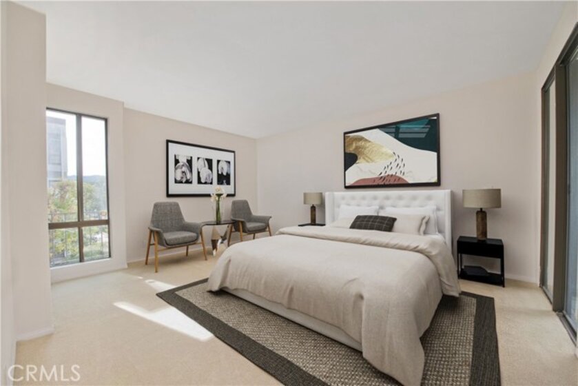 Welcome to the highly sought-after Encino Spa Community. This light-filled corner residence immediately captivates upon entry with a welcoming foyer and a grand living room anchored by a central fireplace, serene tree-top views, and an entertainer’s wet bar. The expansive kitchen offers abundant cabinetry and workspace, seamlessly opening to a sun-drenched dining area overlooking the private patio balcony—perfect for everyday living or hosting guests. The home features two generously sized bedrooms, including an impressive primary suite with a dressing area, walk-in closets, and a spa-inspired bathroom complete with a soaking tub, separate shower, dual vanities, and a private commode room. Additional highlights include a separate laundry room with extensive storage, hallway linen storage, recessed lighting, smooth ceilings, and fresh paint throughout. Set within an immaculately maintained and beautifully landscaped community, residents enjoy resort-style amenities including walking paths, a swimmer’s pool, indoor spa, fitness center, recreation room, sauna, gated parking, and secured access. HOA dues include internet, cable, hot and cold water, and earthquake insurance. Ideally located near transportation, just a short stroll to Boulevard shops and restaurants, and situated on a quiet, tree-lined street—this move-in-ready home offers comfort, convenience, and an exceptional lifestyle you will surely not want to miss!