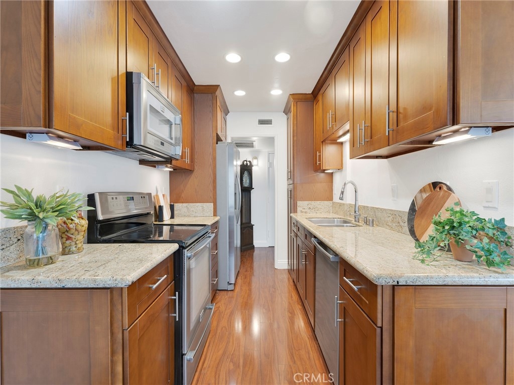 Welcome to this smaller secured access building located in one of Encino's most desirable neighborhoods. Spacious 2 BR 3 BA residence offers bright and open living room/den combination, designed for comfortable living and entertaining at 1440 sq ft. Updated kitchen with granite counters and stainless appliances. Spacious rooms with great closet space. Two balconies for indoor-outdoor enjoyment. This home delivers the perfect blend of comfort, convenience and value ideally located near shopping, dining, and everything Encino has to offer.
