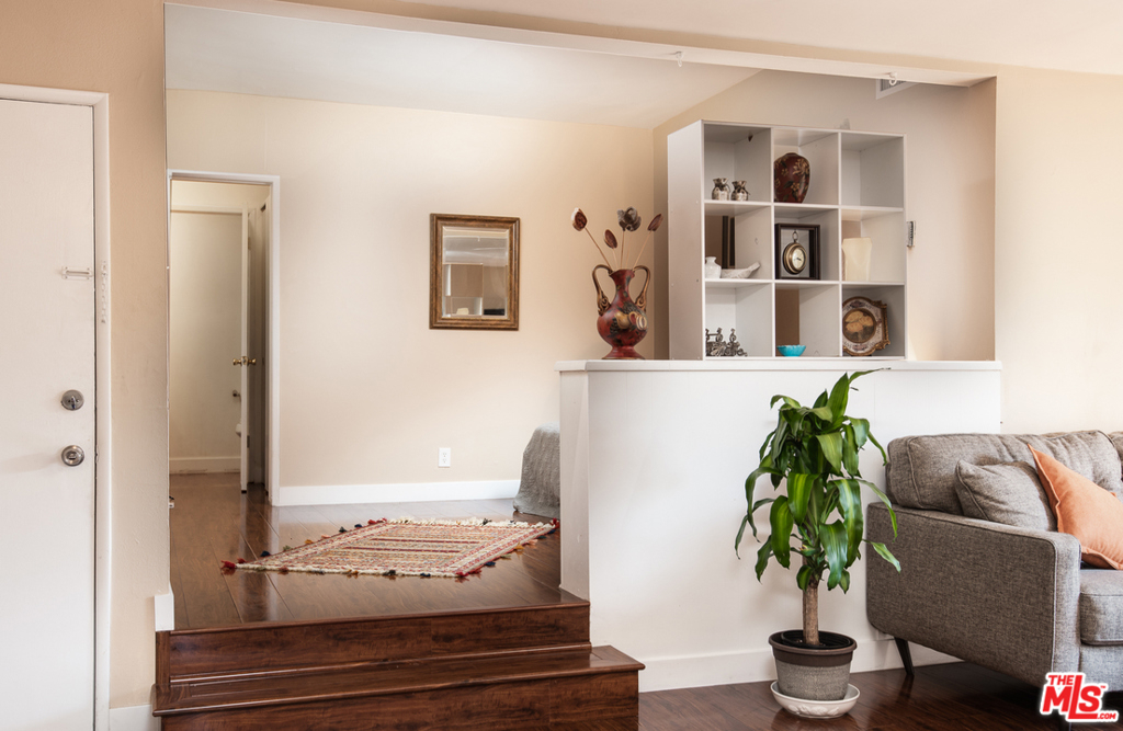 Please Note !! Public records say 2 bd 2 ba. Second bedroom is open to living room. Watch video. Move-in ready. Renovated unit with high end flooring, updated bathrooms and kitchen. Located in the heart of Encino steps away from Ventura Blvd's trendy and diverse eateries and shops. Easy access to public transportation and freeways, yet peaceful inside this light filled unit. Living room opens to private balcony that overlooks lush courtyard. The second bedroom functions well as a home office with attached 1/2 bath. Complex provides outdoor grilling and picnic area near sparkling pool and spa. There is also a community gym and rec. room.