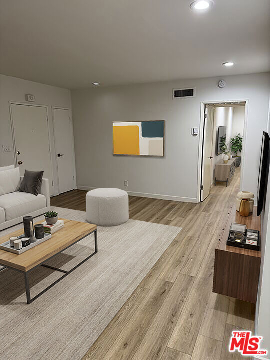 HUGE PRICE REDUCTION! PLEASE COME AND SEE THIS BEAUTIFUL CONDO! Open floor 1 Bedroom + 1 Bath Condo in the heart of Encino area. This unit features hardwood floors, organized walk-in closet and remodeled bathrooms and kitchen. New A/C /Heater unit, water heater. Recessed lights throughout the ceilings. New stove, microwave and dishwasher. The living room opens out to private balcony. Resort style community closed by Ventura Boulevard's shops, restaurants. This building offers sparkling pool, BBQ area, gym, rec room, community laundry and gym. One parking space and private storage are included. Photos are virtually staged.