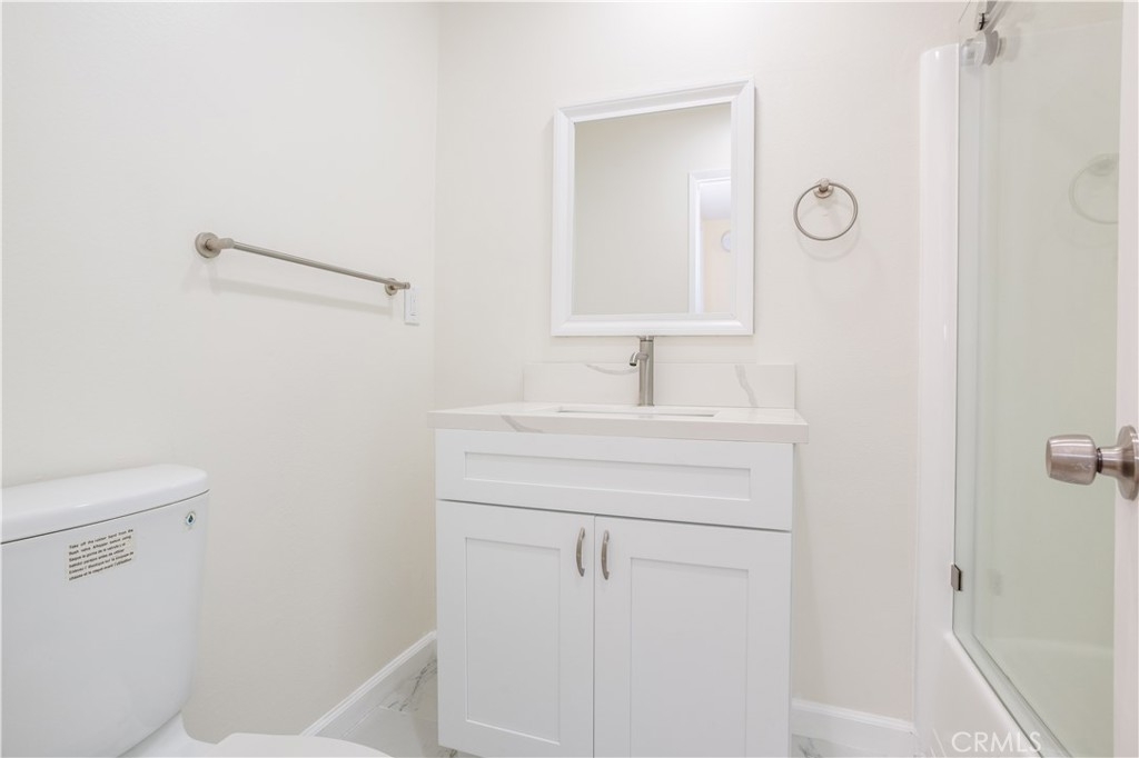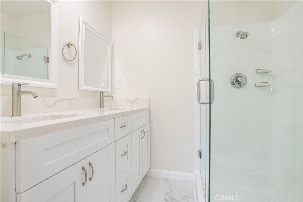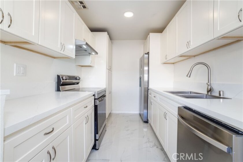 Experience refined modern living in this impeccably renovated 2-bedroom, 2-bathroom residence at 5414 Newcastle Ave #8. Spanning 901 square feet, every inch of this home has been meticulously updated to offer a seamless blend of luxury and functionality. The heart of the home is the stunning gourmet kitchen, which boasts brand-new custom soft-close cabinetry, elegant quartz countertops with a matching backsplash, and a premium suite of new appliances—including a counter-depth refrigerator, oven/range, dishwasher, hood, and garbage disposal. The attention to detail continues into the expanded pantry, which features updated flooring and fixtures for maximum utility. The transformation extends throughout the entire interior with fresh paint, new modern doors, sleek baseboards, and energy-efficient recessed lighting that creates a bright and inviting atmosphere. Both bathrooms have been fully reimagined as spa-like retreats, featuring updated showers and bathtubs enclosed by sophisticated frameless glass doors. These spaces are further enhanced by new vanities, contemporary mirrors, designer flooring, and all-new fixtures, lights, and fans. This prime location is a commuter's and explorer's dream. Boasting a Walk Score of 73, the property is "Very Walkable," placing you just minutes from Ventura Boulevard’s premier shopping, dining (including Trader Joe's and Ralphs), and local parks. For those on the move, the area offers a Transit Score of 43 and a Bike Score of 53, ensuring easy access to everything Encino has to offer. From the stylish hardware to the pristine finishes, this 901-square-foot home offers a completely turnkey experience in one of the valley's most desirable neighborhoods.
