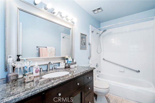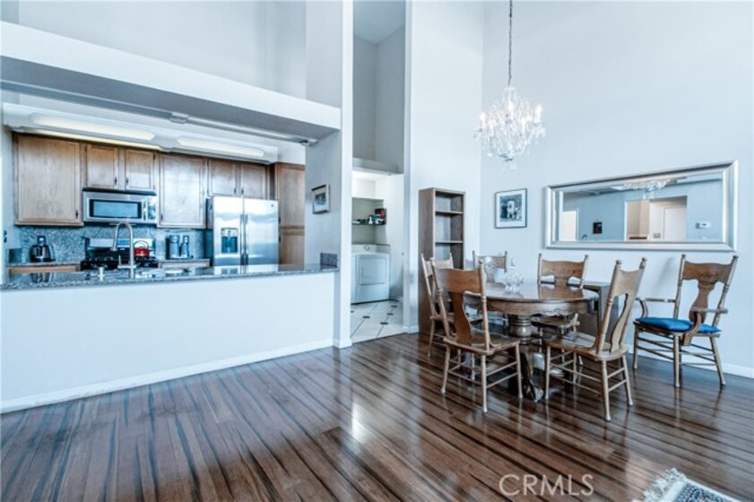 This is a must see unit. Come fall in love. This gorgeous top floor 2 bedroom, 2 bath condo will attract you with its open floor plan, extremely high ceilings and tons of natural light. The majestic double door entrance leads you in, towards an elegant crystal chandelier and a spacious living room with marble fireplace. The living room opens to a large patio with an amazing view of mountains and the city. The patio connects the living room with the primary bedroom. This well-designed condo offers everything you need; bamboo floors in the living and dining rooms, quartz counter tops in the kitchen, in unit washer and dryer, and plenty of closet space. The well-maintained complex with a heated pool and jacuzzi has a resort style atmosphere. The two car parking garage is on ground level inside the building. It is in a prime location near Ventura Blvd in Encino, close to great shopping, fabulous restaurants and night life. All of this makes this unit very attractive and desirable, and it can be yours.