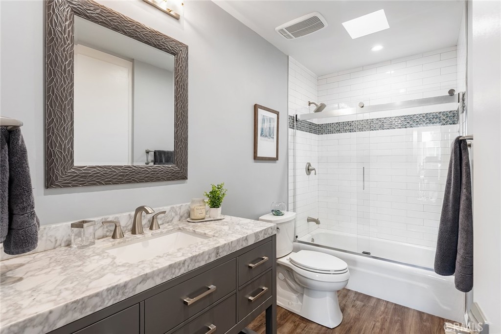 Stunning Contemporary 2+2 Condo in Encino: New Kitchen, Luxurious Upgrades, Gated Garage. Welcome to your dream home in the heart of Encino! This beautifully remodeled contemporary gem offers a perfect blend of modern luxury and comfort. As you step inside, you’ll be greeted by the new vinyl plank flooring that flows seamlessly throughout the open-concept living space. The centerpiece of this home is the completely remodeled kitchen, featuring high-end stainless steel appliances, custom cabinets with soft-close drawers, quartz countertops, and a designer backsplash. Whether you’re hosting a dinner party or enjoying a quiet meal, the extra deep cabinets and decorative shelving provides ample and stylish storage space. The living room is bathed in natural light thanks to a new double paned sliding door that opens to a charming covered patio, perfect for relaxing or entertaining. Both bathrooms have been thoughtfully remodeled, showcasing new vanities, quartz tops, and sleek tile work. The master bath is particularly impressive, with an enlarged layout and a spacious closet suite. The addition of custom blackout blinds ensures that you can enjoy restful sleep any time of day. With new central heating and air conditioning, you’ll stay comfortable year-round. The gated community garage adds an extra layer of security, and the community pool and spa provide an oasis of relaxation right at your doorstep. Located just minutes from the 101 Freeway, Trader Joe’s and all the conveniences of Ventura Blvd, this home combines convenience with luxury. Don’t miss the opportunity to make this exquisite property your own!
