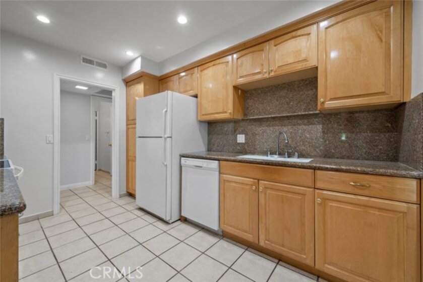 Nestled in a charming Encino complex between Tarzana and Sherman Oaks, this top-floor 2-bedroom, 2-bathroom condo with a private balcony offers an exceptional living experience. Recently updated with new vanities, ceilings, fresh paint, new windows, and a new balcony door, this home combines modern comfort with a welcoming ambiance. As you enter, you’re greeted by a long entryway with sleek tile flooring, leading to a bright kitchen. The kitchen features recessed lighting that highlights the warm tones of the wood cabinetry and granite countertops, along with built-in appliances and a cozy breakfast nook. The open layout of the dining and living areas is ideal for entertaining, enhanced by an adobe-style fireplace and easy access to the spacious balcony through the new door, which offers fantastic views of the complex. Both bedrooms are generously sized with ample closet space. The primary bedroom boasts a private entrance, double closets, and an en-suite bathroom with a shower/tub combo. This gated community, managed by an HOA, provides residents with a range of amenities, including a recreation center, fitness center, gated parking, community laundry room, pool, and spa. Families will appreciate the proximity to excellent schools. Located just minutes from the vibrant Ventura Blvd, you'll enjoy easy access to a variety of restaurants, shops, entertainment options, Trader Joe’s, Target, Walgreens, and the 101 Freeway. Discover all that Encino has to offer!