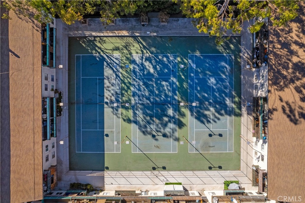 Spacious and updated 2-bedroom condominium in a large complex with lots of fantastic amenities. Located away from the street and freeway, with living room balcony views into the green and quiet courtyard. With Two Master Suites on opposite ends of this end-unit with one shared wall allows for lots of privacy. Features include an updated kitchen, stainless steel appliances, laminate flooring, double pane windows and sliding glass doors, two-master suites with multiple closets (including walk-in). The amenities in this complex are abundant and include a large pool, spa, 3 tennis courts, His and Hers separate Exercise rooms, sauna, billiards room, bbq area, laundry, and much more.