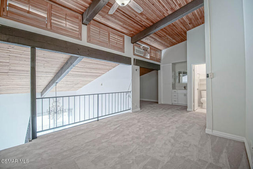 Located in the gated resort-like Encino Oaks community, this updated upper floor, 2 bedroom, 2 bath home is ready for you to move right in! Extra high wood lined ceilings and an open floor plan brings in tons of natural light to this perfectly laid out unit. New flooring, quartz countertops, stainless steel appliance, central air and heat, a well-sized balcony, and 2 covered parking spaces round out this great condo. This complex is full of amenities including gated access, a sparkling pool & spa, clubhouse/recreation room with billiard and ping-pong tables, tennis courts, fully equipped exercise rooms and sauna, as well as a laundry room near the unit. The HOA also includes essential services like water, trash, and earthquake insurance. Located just minutes from the 101 freeway, Ventura Blvd, shopping, dining, and public transportation, this condo offers the perfect combination of convenience and luxury.