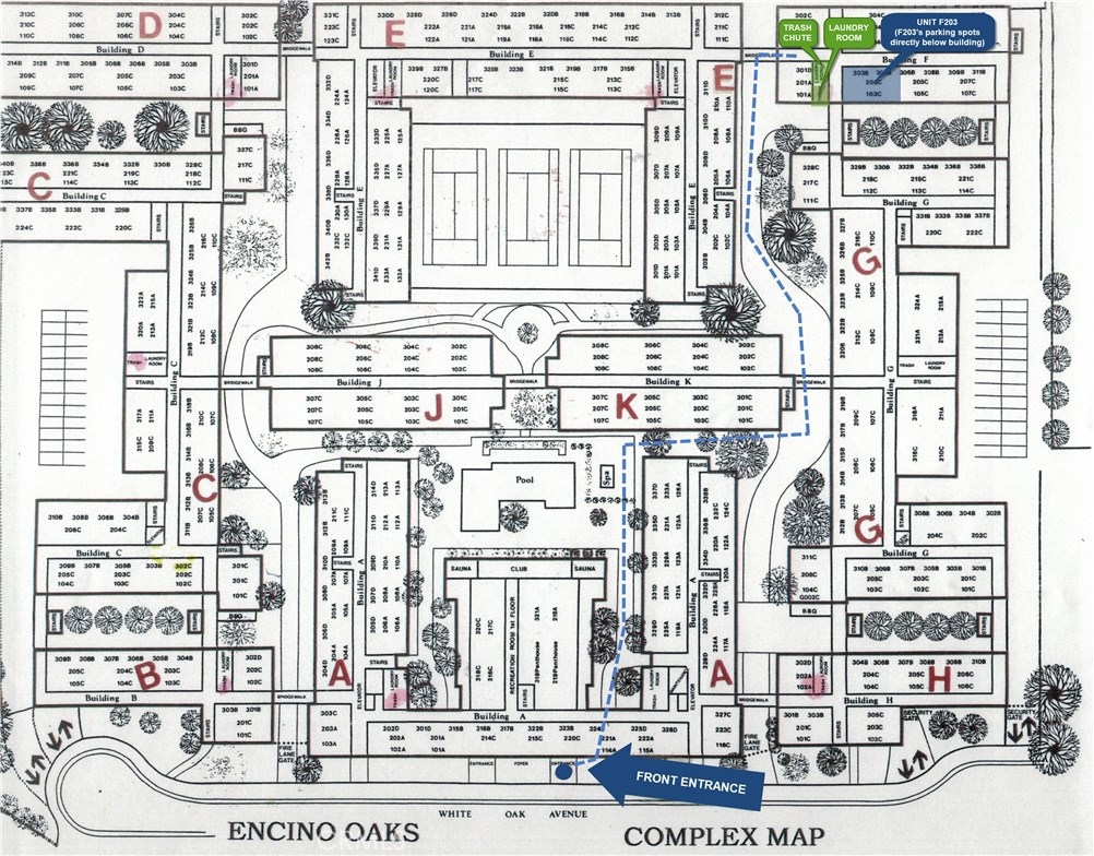 Tastefully updated condo (including granite countertops and stainless appliances) features 2 Master Suites and is located in desirable Encino Oaks. Inviting layout with 2 bedrooms and 2 baths, master bedrooms located on either end of the unit each with its own en-suite bathroom. Encino Oaks is a gated pet-friendly complex offering wonderful mature, park-like landscaping, sparkling resort-style pool, spa, tennis courts, recreation room, gym and more! Building F location is set back in the quietest part of the complex with unit F203 overlooking an inside courtyard (see complex map in photos). Unit is just a few shorts steps to laundry and trash chute. 2 common garage parking spots #626 and #627 (*not* tandem) easily accessible to/from condo. Quick, convenient commuter access to 101 Freeway and Ventura Blvd. Walking distance to great shopping, restaurants and transportation. HOA covers water, sewer, trash and earthquake insurance. Encino Oaks is not VA or FHA approved. Buyer to cooperate with Seller's 1031 exchange at no cost to buyer.