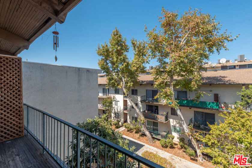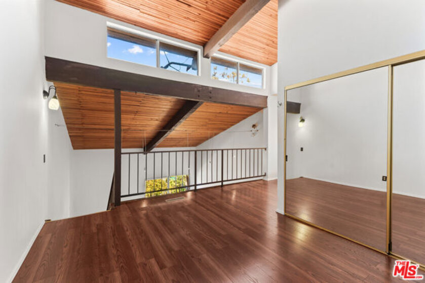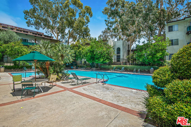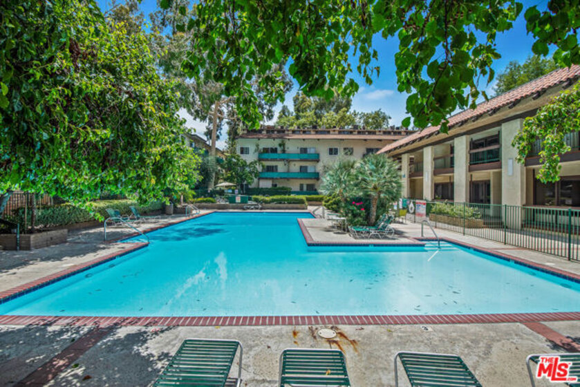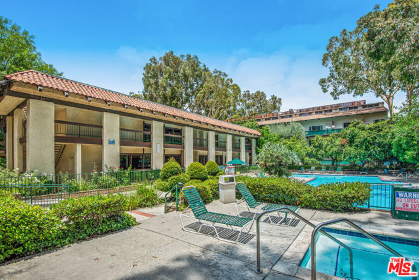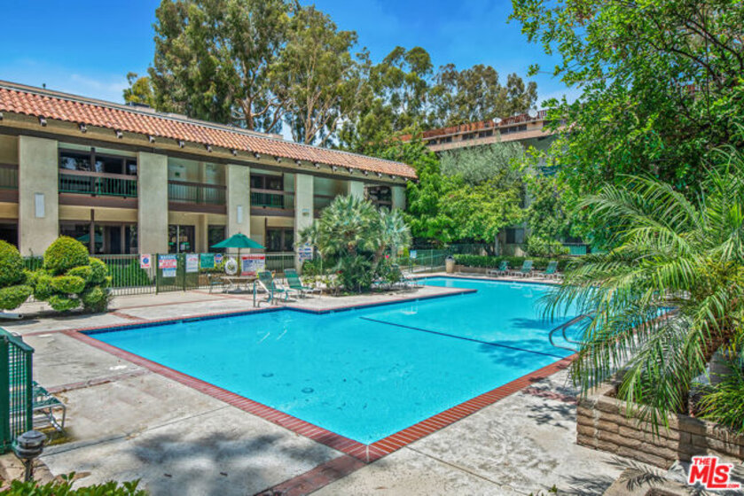 Experience contemporary comfort in this stunning 1 bedroom, 1.5-bathroom penthouse loft located in a gated resort-style community in the heart of Encino. This light-filled unit features soaring wood-slat ceilings, laminate and tile flooring, and an airy open-concept layout. The spacious upstairs loft bedroom includes an en-suite bath, vanity area, and a large walk-in closet, creating a private retreat. Downstairs, enjoy a stylish living area that flows seamlessly to an oversized balcony with tranquil views of the lush grounds perfect for relaxing or entertaining. Thoughtfully positioned on the quiet south side of the complex, this home offers peace and privacy, along with access to top-tier amenities including a pool, spa, tennis courts, gym, and rec room.Unit also includes 2-parking spaces and central air and heat.